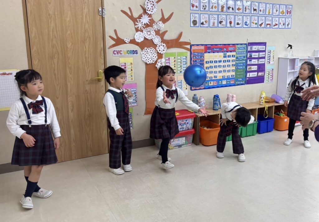 今日は節分の行事を行いました。鬼が来ると固まってしまう子、鬼が怖くて泣いてしまう子、先生の後ろに隠れて様子を伺う子などこどもたちの様子は様々でした。鬼を怖がっていた子ども達でしたが、「out with the bad,in with the good!」と言いながら頑張って豆の代わりのスノーボールを鬼に向かって投げていました。無事に鬼がいなくなるとみんな心底ホッとしている様子でした。みんなが頑張ったおかげで無事に鬼もいなくなり今年も1年健康に過ごすことが出来そうです。