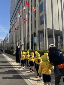 今日はParkに遊びに行きました。天気も良く、最後は上着を脱いで元気に遊んでいた子どもたちです。今日も大学の前を通って国旗を見ました。「 I can see the Brazil!」「 I can see the Kor …